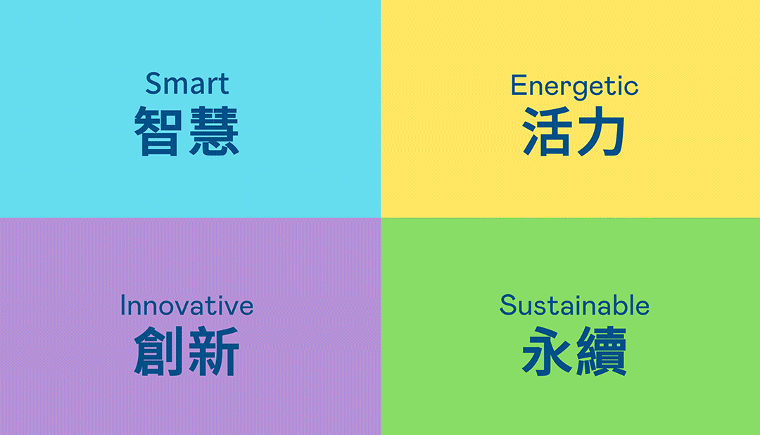 从稳重、信赖的利来蓝开创新色彩,注入象征智慧蓝、活力黄、创新紫、永续绿的品牌色及动态多变的几何图形,呼应不设限的「Possibilities」精神,代表多元的专业技术及领域,在碰撞中相互触动、融合、延伸,持续激荡出更多新的可能性。